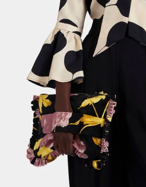 Party season perfection in this sumptuous velvet, our soft oversized zip pouch is a multi-use beauty that not only elevates the status of your dinner-to-dancing outfit, but will easily house a cell phone, mini tablet and cardholder. The side handle makes it super easy to carry around which – great news! – gives you free hands to hold your Bellini at a cocktail party.
