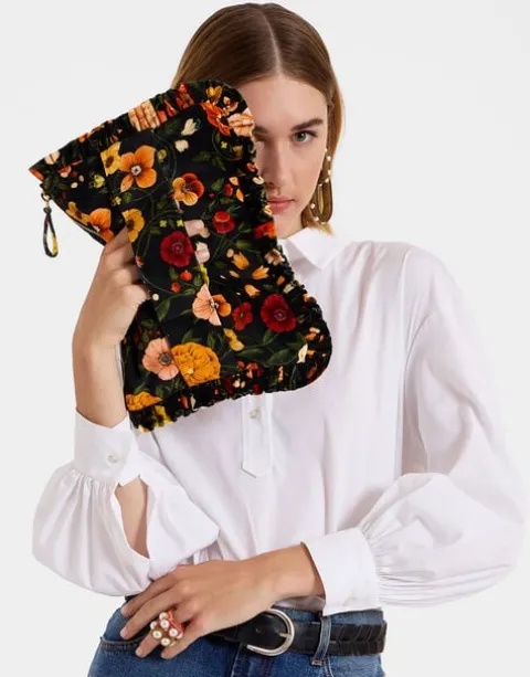 Party season perfection in this sumptuous velvet, our soft oversized zip pouch is a multi-use beauty that not only elevates the status of your dinner-to-dancing outfit, but will easily house a cell phone, mini tablet and cardholder. The side handle makes it super easy to carry around which – great news! – gives you free hands to hold your Bellini at a cocktail party.