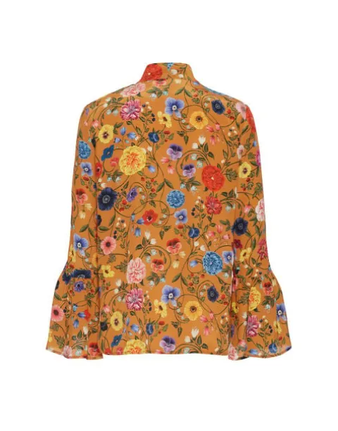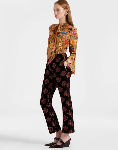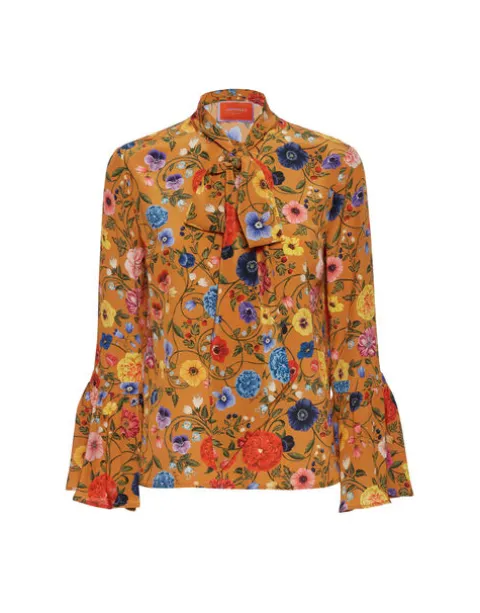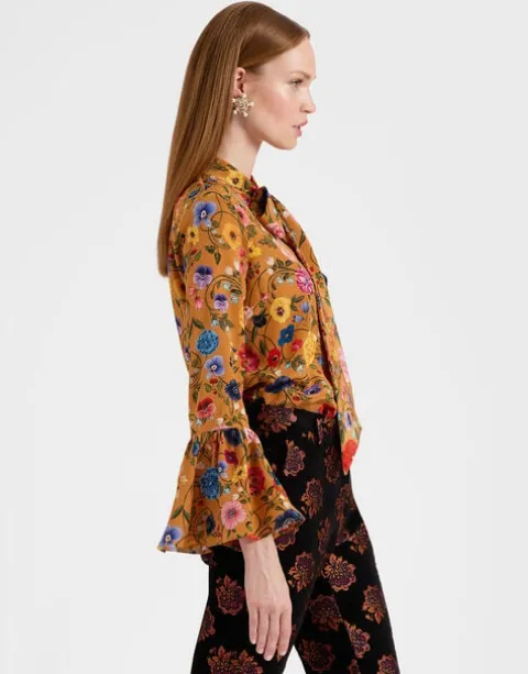 Bow ties and bell sleeves. This is the most romantic blouse on the block. With sweeping bell sleeves that flare just above the wrist and end at the knuckle, you’ll instantly hypnotize with just a flick of the wrist. The 100% silk top hits right at the waist and has a romantic pussy bow that you can knot up in a floppy bow or leave it free and open in a sexy v-neck.