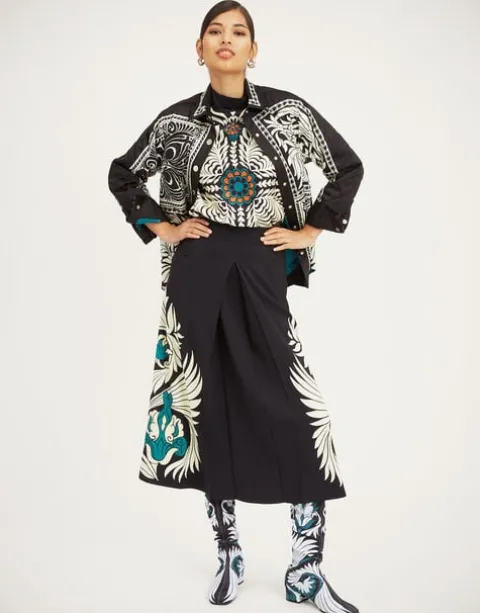 High on impact and low on effort, Iris is the chicest answer to cold shoulders this season. Named after our nonagenarian sister-in-maximalism, Iris Apfel, this androgynous silhouette riffs off a masculine shirt silhouette, with a slightly oversized fit and pockets in the sides. Arriving in this stunning hand-placed print, wear it a la Apfel with the matching printed Santa Monica Skirt and the biggest sunglasses you can find.