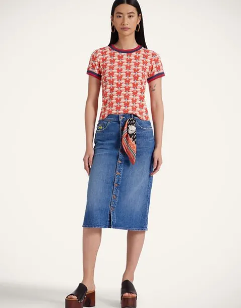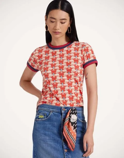 A scoopneck with Serious soul this tee from the Ciao Mamma! collaboration between La DoubleJ and MOTHER features double binding at the neck and sleeves, a cropped hem and slim fit for extra form-flattering fabulousness. It features LDJ’s in-house designed Pull My Petaltail print starring one of the brand’s first-ever spirit animals, the dragonfly, a symbol of change, rebirth and joy.