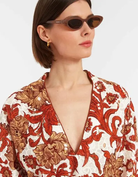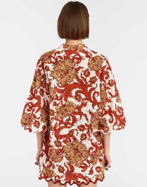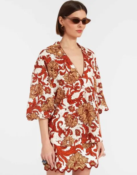 Oversized but elegant, intricate but effortless, the Jackie Top is everything you want in a sophisticated summer shirt. With a high-low hem and roomy back, she’s a throw on a glow kind of top, crafted either in our powerful printed lace, light cotton poplin or elevated evil eye macramé. A little sheer, she can still be worn braless without leaving you super exposed, and is long enough to cover your bathing suit and chic enough for a night out in Portofino.