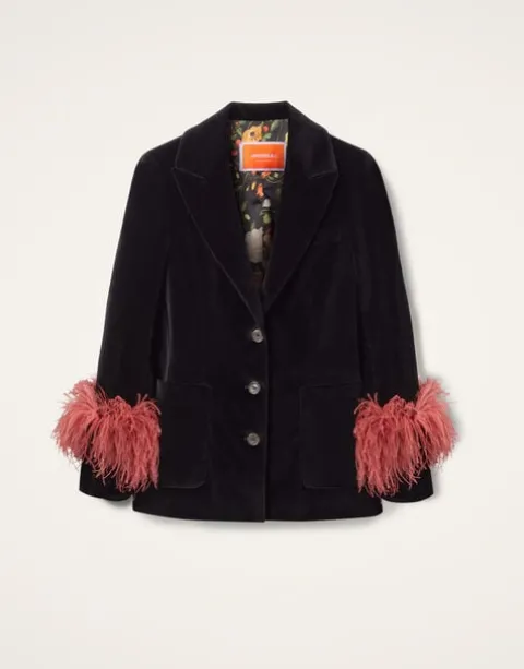 We’re not ones for favorites, but Diane Keaton is kind of a superhero of ours. So we’ve crafted our version of the essential tuxedo jacket, cut from Italian velvet, with feathered cuffs for added flare. Nipped at the waist (but not too cinched), structured through the shoulders (but not too much), this is a dynamite day-to-night wardrobe workhorse matching wonderfully with coordinated velvet 24/7 Pants, or layered over dresses like the Long Camerino for a more boho-business look. Dare we say she’s the perfect jacket? Yes, we dare.