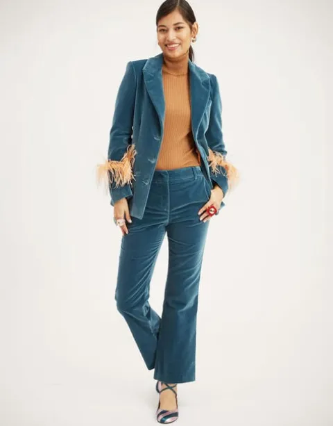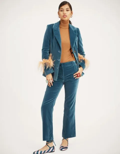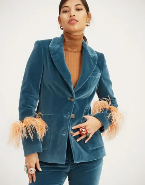We’re not ones for favorites, but Diane Keaton is kind of a superhero of ours. So we’ve crafted our version of the essential tuxedo jacket, cut from Italian velvet cotton, with feathered cuffs for added flare. Nipped at the waist (but not too cinched), structured through the shoulders (but not too much), this is a dynamite day-to-night wardrobe workhorse matching wonderfully with coordinated velvet 24/7 Pants, or layered over dresses like the Long Camerino for a more boho-business look. Dare we say she’s the perfect jacket? Yes, we dare.