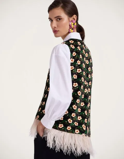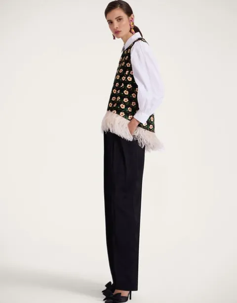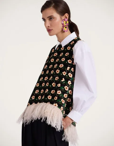 As far as interesting silhouettes go; this top may win the gold star. The asymmetrical hem, trapeze silhouette and contrast feathered hem creates an alluring form. In sumptuous Italian velvet it’s undoubtedly upscale, but looks just as great with some jeans and flats.
