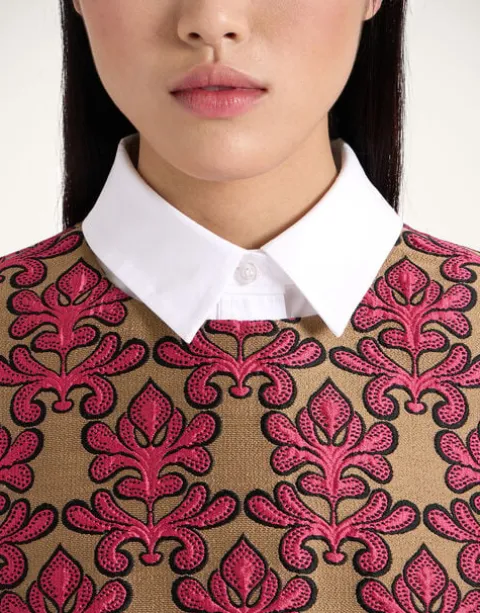 As far as interesting silhouettes go; this top may win the gold star. The asymmetrical hem and trapeze silhouette create an alluring form, while its jacquard fabrication keeps it undeniably upscale (even though we love to pair it with a jean and some flats for a high-low vibe).