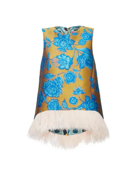 As far as interesting silhouettes go, the La Scala Top may win the gold star. Prime for opera invites, cocktail soirees, Milanese coffee runs and beyond, it arrives in our structured jacquard with an alluring asymmetrical hem and contrast marabou feather trim. Jeans and ballet pumps girls will find it slips in effortlessly with any denim rotation; maximalist mavens seek out the stunning Pencil Skirt to match.