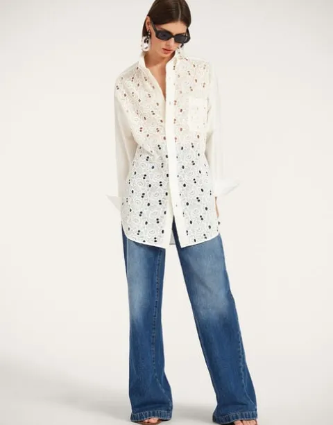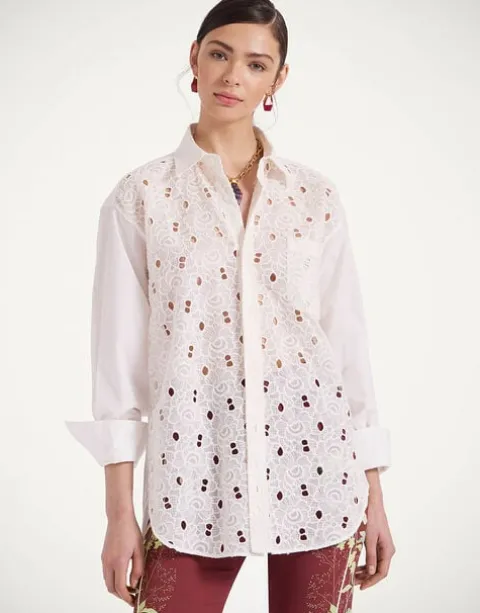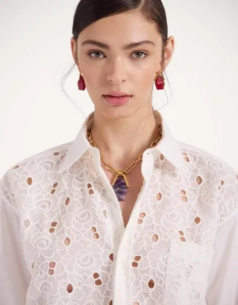 We’ll go ahead and say it – this just might be the perfect shirt. One that’s tailored in all the right places but still oversized enough to feel effortlessly laid back. Crafted in our uber special Sangallo lace this beauty pops with pretty much anything – your favourite pair of jeans, a printed Pencil Skirt, over a bathing suit, or nothing at all!. Just keep this one close to the chest….your boyfriend will want to steal it, we guarantee.