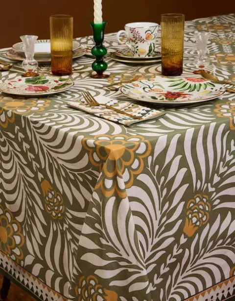 Bring out the big guns with our biggest tablecloth, babe! This 100% linen design is the perfect size for large tables (round or square) and really brings the glam to a family dinner. All you need to do is layer this dazzling Tudor print version up with our clashing plates, colour-pop table-mats and matching napkins depending on how maximalist you’re feeling. Treat this beauty with care: our bellissimo Italian-made linen has natural irregularities, such as small knots in the yarn, but for us that doubles the charm