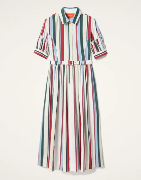 Crafted from either the finest cotton poplin or jacquard in Italy, this is THE season’s dress for all-day elegance and ease. Short sleeves, cinched waist, full circle skirt, our resurrection-inspiring scarab symbol buttons? Just add heels and a bicycle and you’re spring-in-the-city ready, sis.