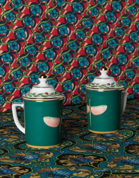Made in collaboration with Italian porcelain greats, Ancap, this Lidded Mug is made from the highest quality porcelain with a hand-painted gold trim. It has an Italian-style decorative topper to keep your tea piping hot. Featuring a brilliant turquoise pigment and a delicate vintage dragonfly illustration, it’s ringed in budding flowers and hand-drawn leaves. A gifting lifesaver, bring it along as your next hostess present and you’ll be first on the guest list for years to come. Oh, and it can go in the dishwasher. You’re welcome.