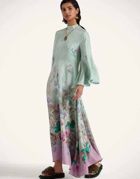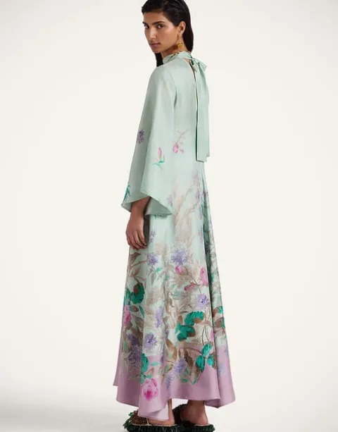 Shouldn’t every babe have a dress called the Magnifico hanging in her closet? La DoubleJ believes so! With a stand-up collar, long sash at the back and draped waterfall sleeves, this special number will glide you around the room with an ease and an elegance reserved for the most exclusive of occasions. Cut in our Como-made silk twill with a subtle sheen, it exudes chic Italian elegance in this dazzling print, exquisitely placed by artisan hands.