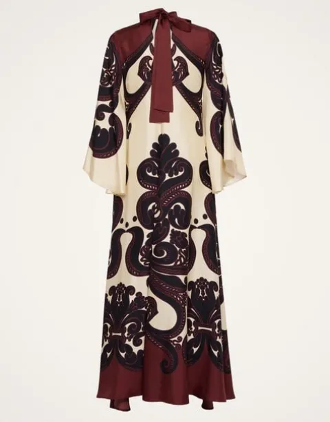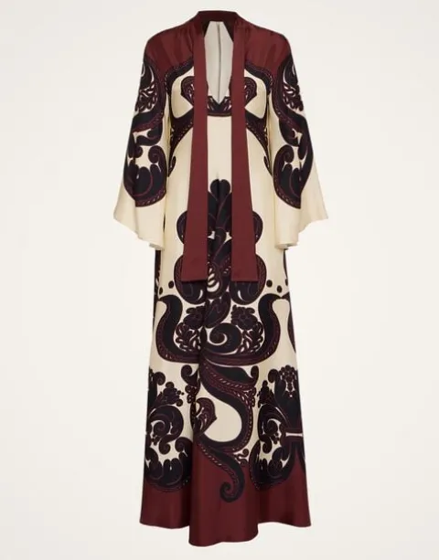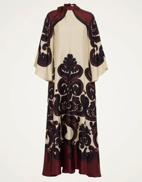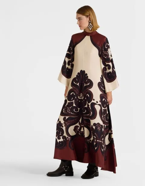 Shouldn’t every babe have a dress called the Magnifico hanging in her closet? La DoubleJ believes so! With a stand-up collar, long sash at the back and draped waterfall sleeves, this special number will glide you around the room with an ease and an elegance reserved for the most exclusive of occasions. Cut in our Como-made silk twill with a subtle sheen, it arrives just in time for party season in this truly stunning Grenadilla print which is placed by Italian artisan hands. Go on baby, be beguiling.