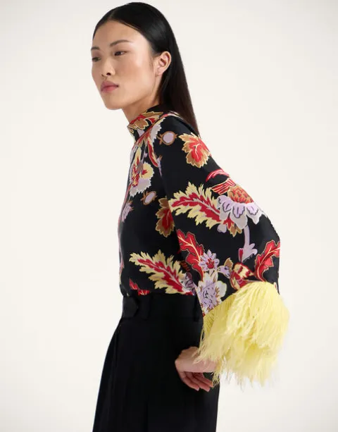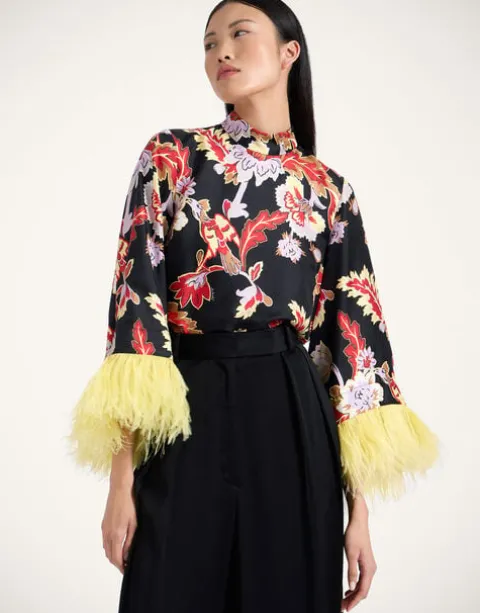 If a top could be a tease, this one would be it. Deceptively demure in the front with a high neck and easy A-line shape through the body, it’s the back of this beauty that truly wows, with a cape-like high-low back that floats as you turn. This silk twill iteration with feather-dipped sleeves has date night drama written all over it. Throw it under a gilet or our Folk Jacket for bohemian flare, or with our Milano Skirt for a super chic silhouette.