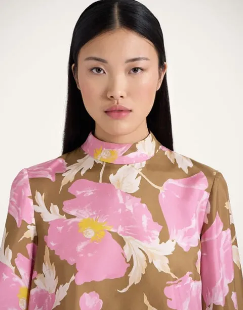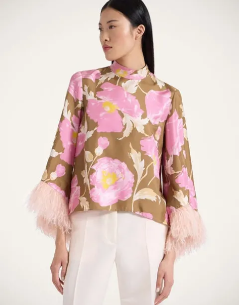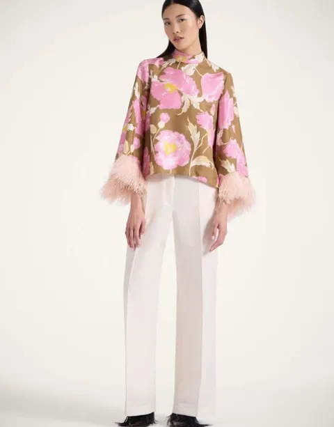 If a top could be a tease, this one would be it. Deceptively demure in the front with a high neck and easy A-line shape through the body, it’s the back of this beauty that truly wows, with a cape-like high-low back that floats as you turn. This silk twill iteration with feather-dipped sleeves has date night drama written all over it. Throw it under a gilet or our Folk Jacket for bohemian flare, or with our Milano Skirt for a super chic silhouette.