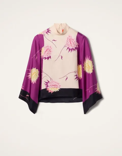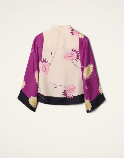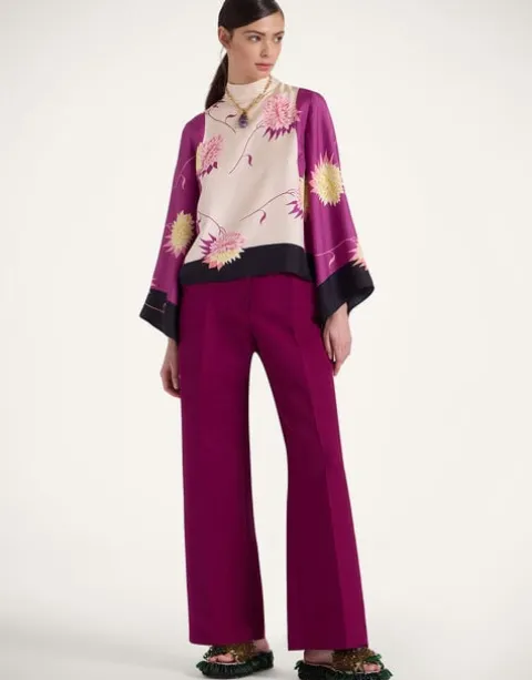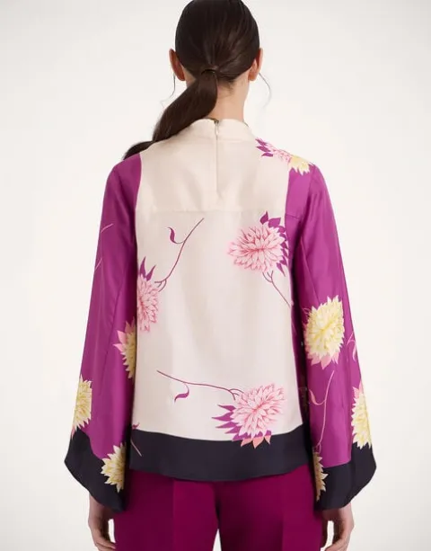 If a top could be a tease, this one would be it. Deceptively demure in the front with a high neck and easy A-line shape through the body, it’s the back of this beauty that truly wows, with a cape-like high-low back that floats as you turn. This silk twill iteration with oversized bell sleeves has date night drama written all over it. Throw it under a gilet or our Folk Jacket for bohemian flare, or with our Milano Skirt for a super chic silhouette.