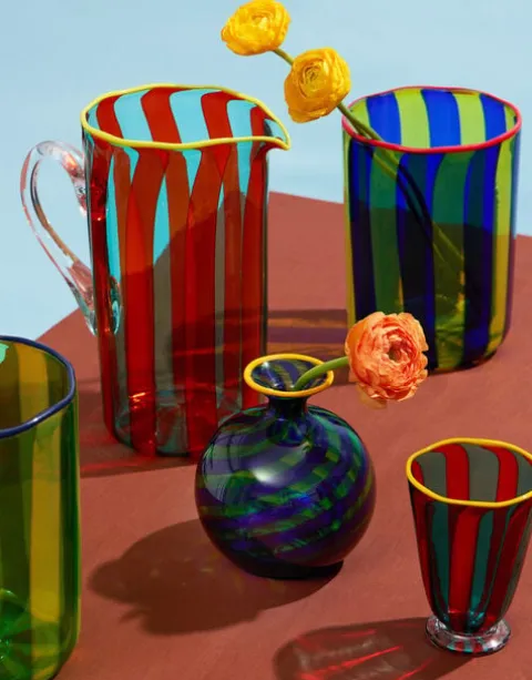 Is she a vase? Is she a vessel? Is she a beautiful decorative sculpture? Yes….to all three. Hand-blown by the finest glass artisans at Salviati in Venice, this stunning carafe is part of our exquisite Rigadin collection, crafted using an intricate technique by which the still molten glass is rotated on a mould called a bronzin, for its unique ribbed effect. Fill her with water, wine, flowers, or nothing at all. This beauty shines no matter her setting.