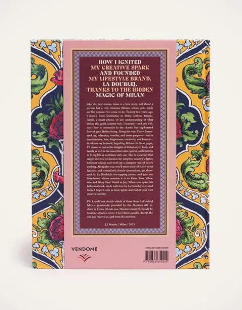 Embrace female empowerment with J.J. Martin, the colorful Captain of our LDJ Joy ship, with the ultimate insider’s guide to Italy and her magic, “Mamma Milano”. After moving from Manhattan to Milan 20 years ago, with no job, no friends, and no patience for the Italian way of life, J.J. Martin realized she had no option but to surrender to the vibrant but slow-paced lifestyle. In so doing, she discovered more joy (and success) than she could ever have imagined. In this uplifting volume, Martin invites us to jump on board and join her on her journey—an outsider’s evolution through life, love, loss, creativity, and magic—to today’s beloved “Milano.” Dive into the delights of Italian fashion, food, and good living; meet some of Italy’s leading female tastemakers (the “La DoubleJ Babes”); tap into Martin’s spiritual secrets for unleashing inner creativity and wisdom; and more—all with a dash of LaDoubleJ vintage chic and oodles of Italian style. This feel-good book is a celebration and a creation story—both of a brand and of becoming your own woman, the Italian way. “La DoubleJ is probably the only fashion company whose founder is also its in-house guru. Her company is growing at an increasingly fast pace, as is the community of women surrounding the label with a supportive ‘feminine energy.’” —Vogue Runway, January 2020 Each copy is bound in one of three iconic La DoubleJ printed fabrics – the heart-lifting Colombo, the whimsical Ananas and the graphic geometric Mezzaluna.