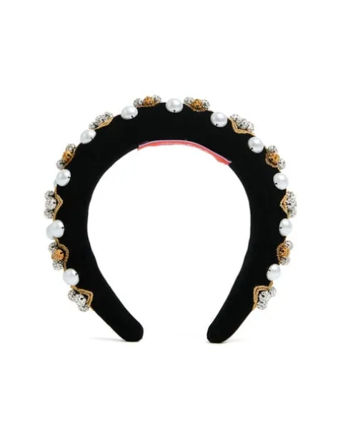 The Medici family were arguably the greatest patrons and celebrators of art and architecture during the Renaissance, as close to Italian royalty as you can get. Naturally, we had to craft a crown-like headband inspired by them, a soft structure studded with oversized gems crafted in velvet. Gorgeous as the final touch to an already dramatic Magnifico Dress moment, we love her with a tee and jeans as a divine feminine touch.