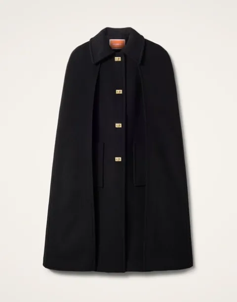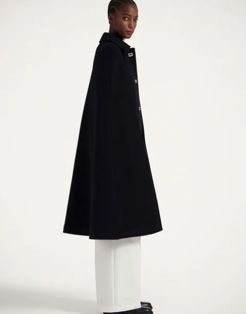 If the mysterious magic of Milan could be captured in a garment, this would be it. The drama is in the details of this romantic cape, which arrives in sumptuous but structured wool cady with two exaggerated slits down the side so you can still carry your favorite designer bag with you to your night out at the opera. Maximalists will delight in the statement-making placée print, while the all-black iteration comes with a printed silk lining that peeks through when you float through the streets of Rome. The gold toggle clasp adds a touch of masculine flare to an otherwise feminine shape, which pairs just as well with your favorite DoubleJ denim as it does with your red carpet gown.