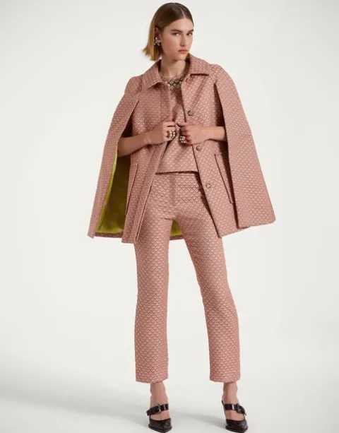 “Paris is the capital of fashion. Milan is the capital of style.” An opulent new addition to our outerwear offering, The Milano Mini Cape epitomizes the elegance and whimsy of the design capital’s aesthetic. Crafted from structured wool candy or our luxuriously soft jacquard delta, this cape comes with buttons at the cuff should you wish to close the sleeve, and a built-in gilet for the perfect cosy fit. An instant outfit elevator, pair it with our new jacquard Milano Skirt, your favorite jeans, or literally anything you have on to add sensuality and drama to your look.