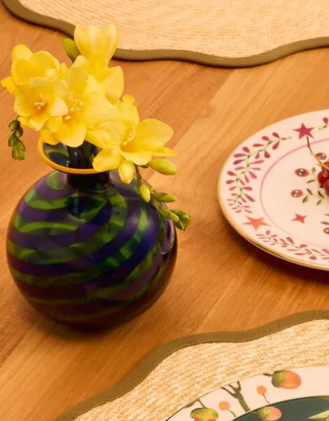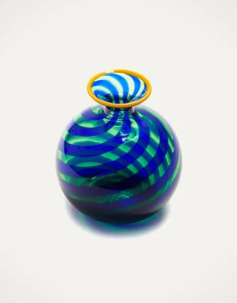 A perfectly petite vase that packs a perky punch, this beauty is crafted from hand-blown Murano glass, featuring all the unique signs and marks of its artisanal production that make each piece one-of-a-kind. With ridged details to draw your eye, place it around your home for a pop of joy, fill with buds or mix and match with our other vases for a vibration-raising table centrepiece. Oh, and it makes a great gift, too