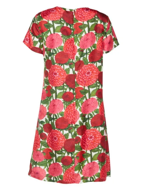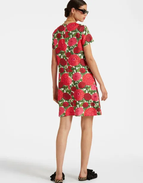 Take our signature Swing Dress, give it a generous chop and voila! You’ve got the Mini Swing. The shorter version of this easy T-shirt silhouette falls around mid-thigh, perfect for La DoubleJ’s more petite fans or for showing off your legendary legs. Made in our glossy silk twill and bodacious Dahlia print exclusive to Net-A-Porter, it works as well for day (with a pair of tights) as it does night (polished pins and heels all the way).