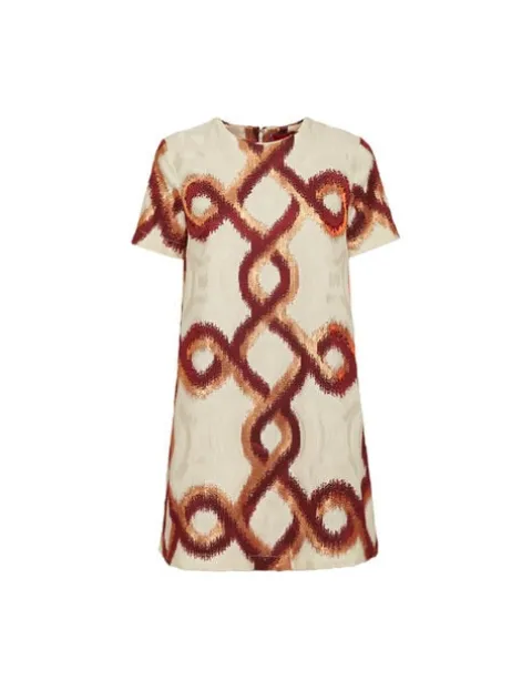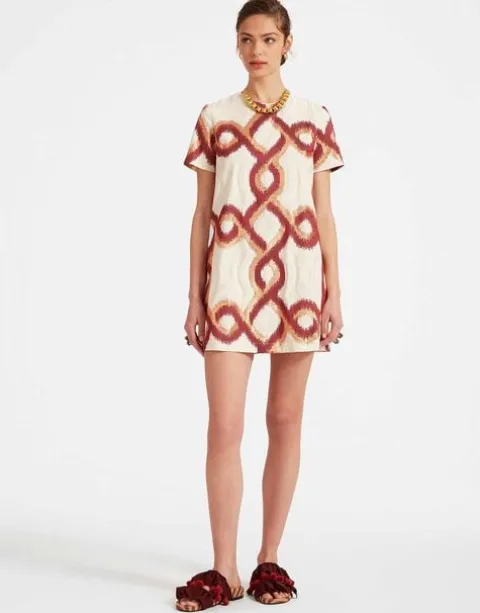 Take our signature Swing Dress, give it a generous chop and voila! You’ve got the Mini Swing. The shorter version of this easy T-shirt silhouette falls around mid-thigh, perfect for La DoubleJ’s more petite fans or for showing off your legendary legs. Crafted for cocktail parties and date nights in our structured Tackle jacquard, style with polished pins and white sneakers now, black tights and platforms later.