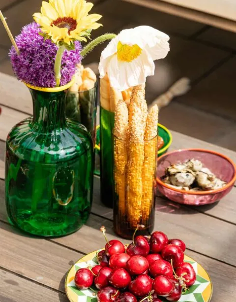 Hostesses, get ready to share the compliments with this showstopping carafe, destined to be the conversation piece of any minimalist or maximalist dinner party. Crafted from hand-blown Murano glass by the Venetian glass masters Salviati, it has a gorgeous ridged shape that’s perfect for punch or water and an LDJ wink in the form of a contrast color rim. Each carafe features all the unique signs and marks of its artisanal production methods: those rings and bubbles are happy proof that it has been created by human hands, and are what we think makes it so special. Don’t forget your DoubleJ water glasses to match. Let the compliments commence!
