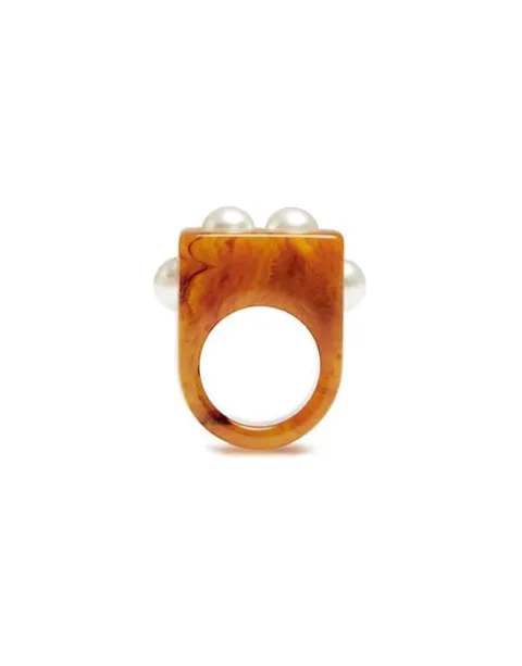 Crafted from solid coloured resin with statement pearls studding it’s edge, the Nefertiti Ring is bold, beautiful and totally badass. Whether you’re rocking it with a monochrome outfit or a print on print party, this design was destined to stand out. Treat her with care, that resin is precious.