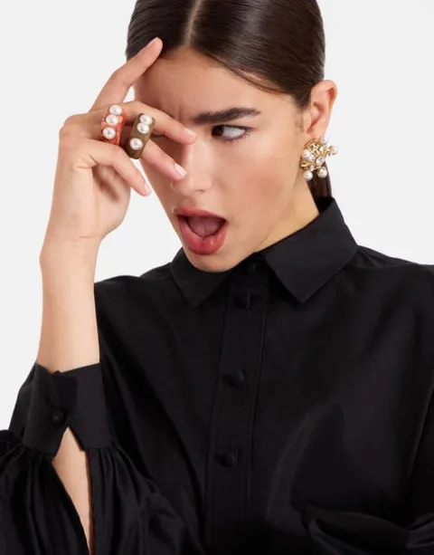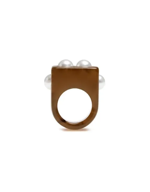 Crafted from solid coloured resin with statement pearls studding it’s edge, the Fawn Ring is bold, beautiful and totally badass. Whether you’re rocking it with a monochrome outfit or a print on print party, this design was destined to stand out. Treat her with care, that resin is precious.