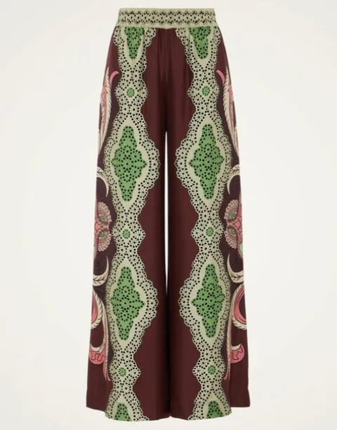 We cannot take credit for inventing the Palazzo Pant silhouette, but we will take credit for making them cool again. These trousers sit on the waist and fall flared, with a wide, breezy fit through the legs – like a skirt, but with the comfort of pants. A bellissima wardrobe addition in this chic hand-placed print.
