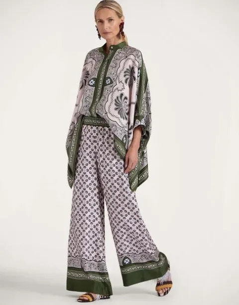 We cannot take credit for inventing the Palazzo Pant silhouette, but we will take credit for making them cool again. These trousers sit on the waist and fall flared, with a wide, breezy fit through the legs – like a skirt, but with the comfort of pants. A bellissima wardrobe addition in this chic, hand-placed Mirage print.