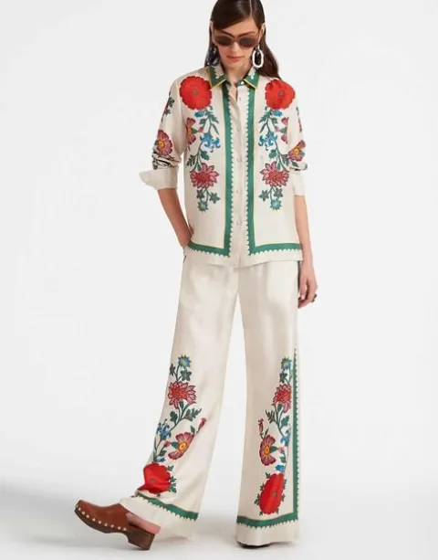 We cannot take credit for inventing the Palazzo Pant silhouette, but we will take credit for making them cool again. These trousers sit on the waist and fall flared, with a wide, breezy fit through the legs – like a skirt, but with the comfort of pants. A bellissima wardrobe addition in this chic and timeless Dragonflower print.