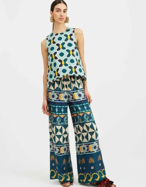 We cannot take credit for inventing the Palazzo Pant silhouette, but we will take credit for making them cool again. These trousers sit on the waist and fall flared, with a wide, breezy fit through the legs – like a skirt, but with the comfort of pants. Let our tiled Casareale print evoke Portofino summers – wear them over the matching Sexy swimsuit for your morning ocean plunge.