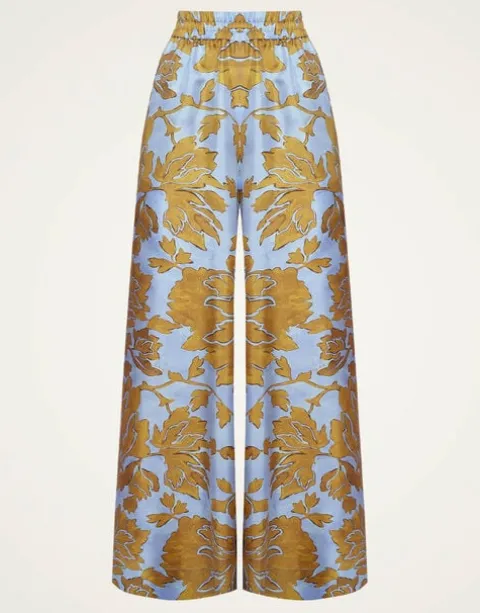 We cannot take credit for inventing the Palazzo Pant silhouette, but we will take credit for making them cool again. These trousers sit on the waist and fall flared, with a wide, breezy fit through the legs – like a skirt, but with the comfort of pants. A bellissima wardrobe addition in this chic and timeless Fan print.