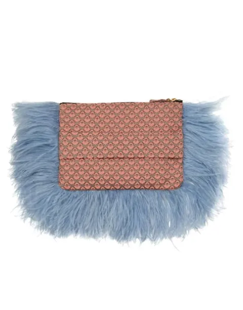 Didn’t think our pochettes could get more perfect? Think again. We took this best-selling baguette with her sleek subtle side handle, crafted in Italian Jacquard and dipped her with feathers for even more fabulousness. The perfect size for your phone, your iPad, your wallet, and any extra phone numbers you’ll no doubt pick up at the party.