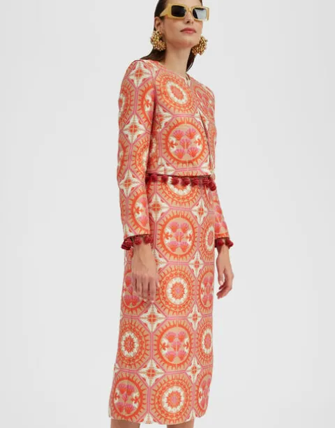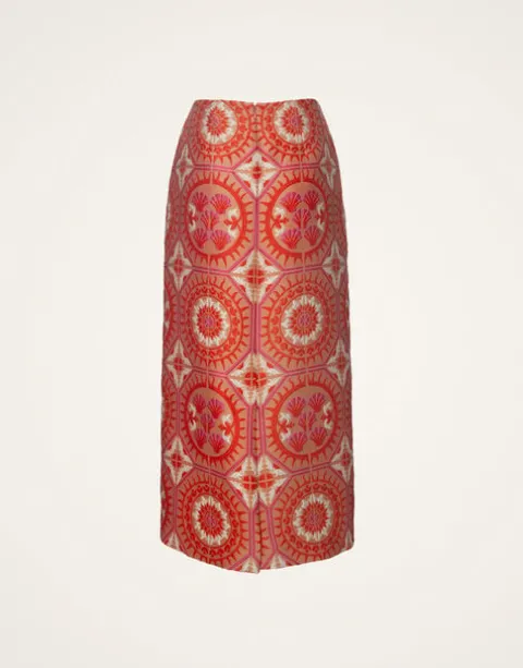 An LDJ icon, our Pencil Skirt returns in this sumptuous Sun Jacquard to wow your work crowd or pull out for a special RSVP. Cut in a classic column shape, it sits low on the hips with a slit at the back for easy strolling. This beautiful Sun Jacquard will bring joy to a crisp white shirt or style it with the matching La Scala Top for your easiest entrance-making ensemble yet.