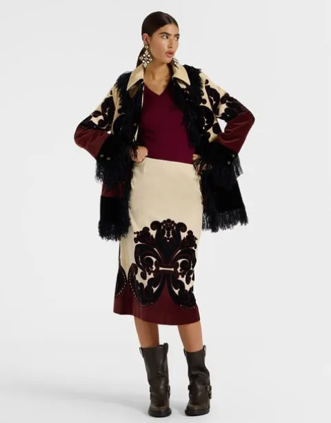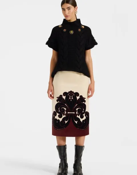 An LDJ icon, our Pencil Skirt returns in this sumptuous velvet to wow your work crowd or pull out for a special RSVP. Cut in a classic column shape, it sits low on the hips with a slit at the back for easy strolling. This beautiful hand-placed print will bring joy to a crisp white shirt or style it with the matching La Scala Top for your easiest entrance-making ensemble yet.