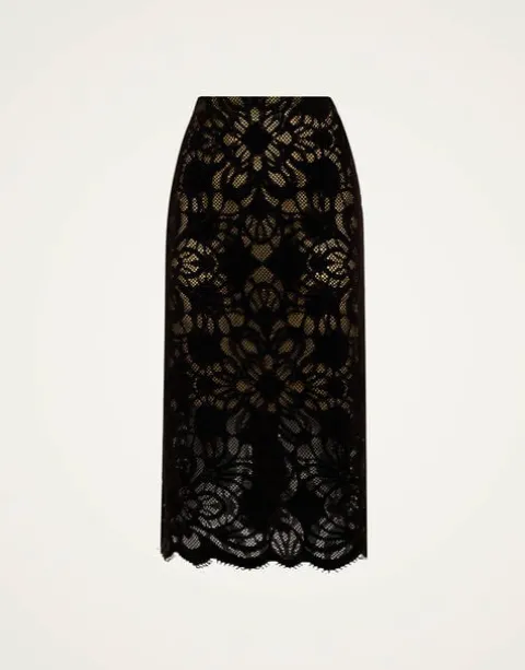 An LDJ icon, our Pencil Skirt returns in this sumptuous Vaudeville Lace to wow your work crowd or pull out for a special RSVP. Cut in a classic column shape, it sits low on the hips with a slit at the back for easy strolling. This beautiful piece will bring joy to a crisp white shirt or style it with the matching La Scala Top for your easiest entrance-making ensemble yet.