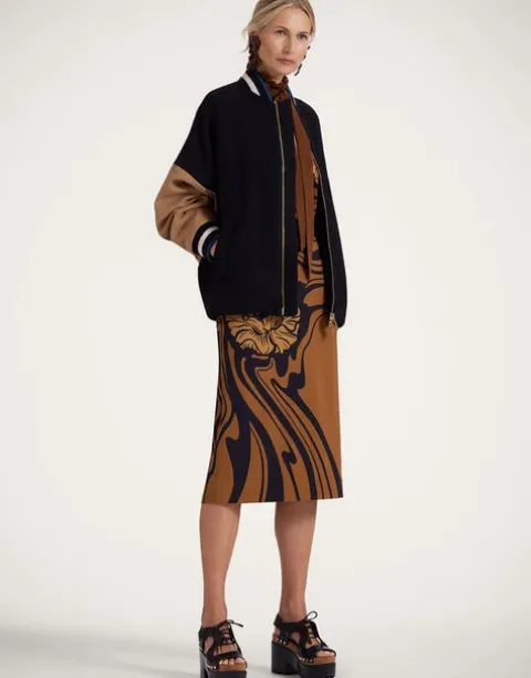 Not your librarian’s pencil skirt. In our heart-pumping LDJ prints this baby is a bonafide mood-booster. Sitting low on your hips, it hems about the calf and has a slight flare for easy strolling. We’ve crafted it in our sleek satin sablé, making it perfect for an elevated autumn day look or holiday occasion outfit. Pair with a mis-matched Boxy Shirt for a cute pattern clash and call it an outfit, ladies.