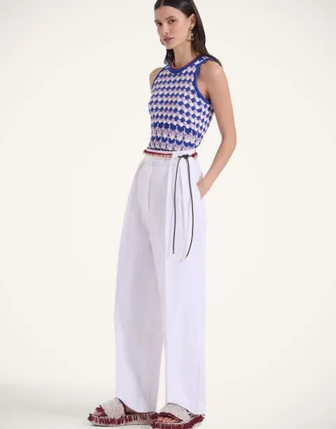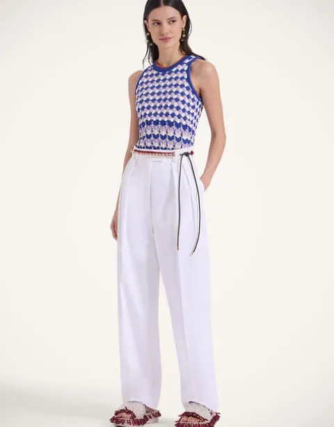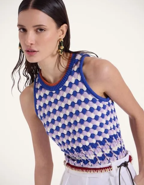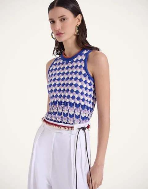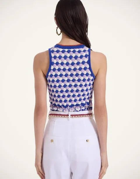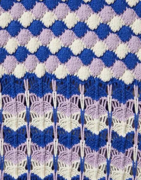 Short-sleeved and sweet, this knit polo reminds us of sunny days in Soho – a little bit flirty, and definitely fashion-forward. Crafted from a textured popcorn cotton with a crochet detail along the front, this is definitely a more decadent take on the simple spring sweater.