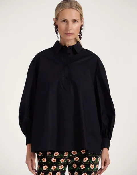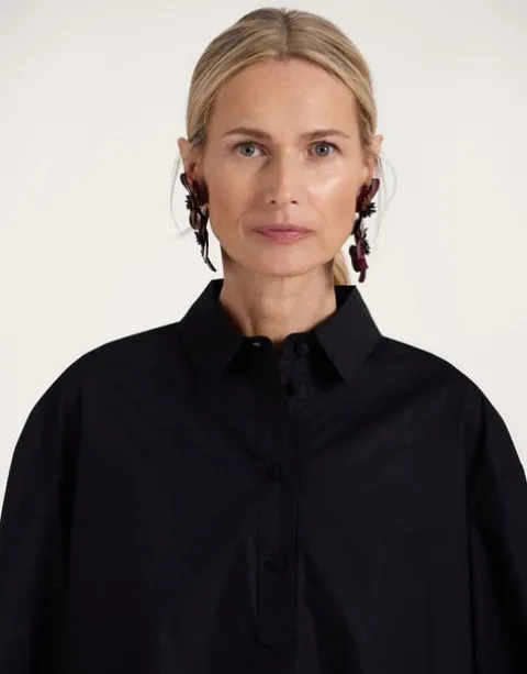 Not all shirts are created equal, friend. Enter the Poet Shirt, with its voluminous sleeves, pleats in the back and romantic cut, it’s a bonafide where-did-you-get-that number. A tent shape that looks great on all shapes and sizes, it’s made from our crispy cotton poplin and super versatile for daytime or evening in matte black. Eye-catching left loose but beautiful tucked into pants, too.