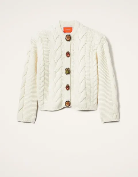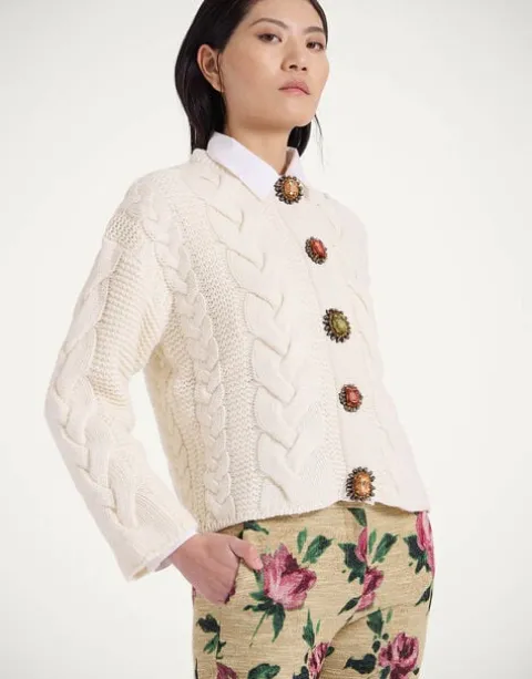 A chunky cropped cardigan crafted from a cashmere-merino blend? Sign us up, sister. With thick braids down the front and sleeves, this extra special statement piece will have you aching for sweater weather even in high summer. And yeah, we added gems along it for a little extra Italian opulence – can you blame us? Just look at this beauty!