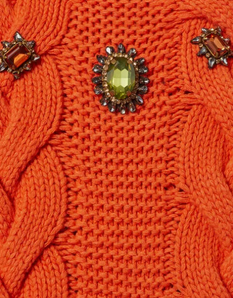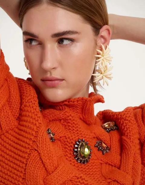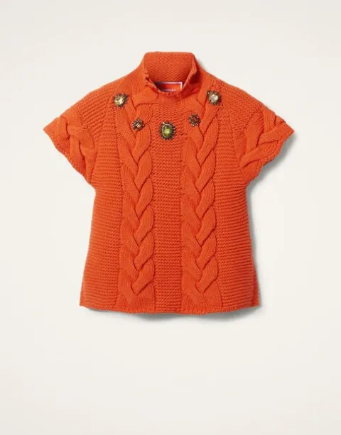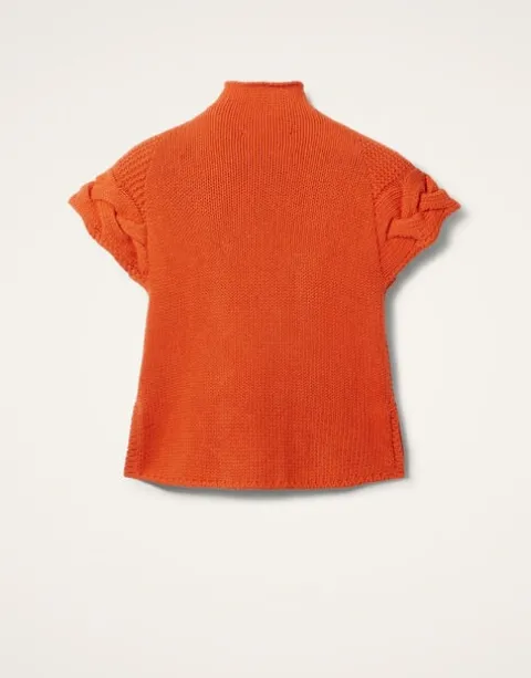 Just like our Portrait Sweater, this knit kit essential has chic, chunky braids down the front and across the shoulder, but this time with short sleeves and a romantic high neck. Small slits at the side hem give her a more waisted effect. Adorable with jeans or over our La Favorita slip dress.