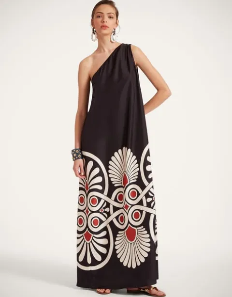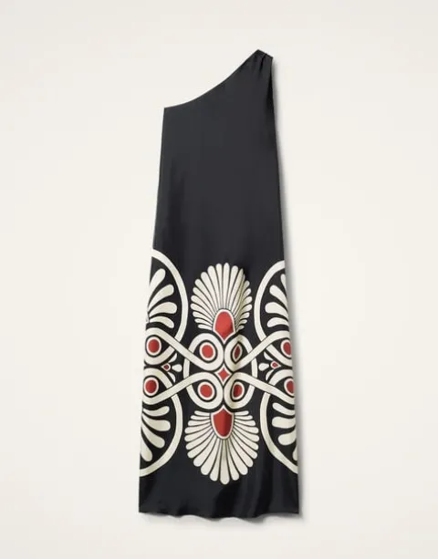 Who knew there was so much drama in deliciously draped fabric? Harking back to glamorous disco days at Studio 54, the one-shouldered Roy Dress is cut in a simple column shape that serves a statement every time. That’s all thanks to our iconic silk twill made in Como, which cascades off the shoulder like a waterfall into a generous, floor-sweeping skirt. There are pockets (every glamourpuss needs pockets) and, as for the rest, we’ll let our mood-boosting hand-placed print do the talking.