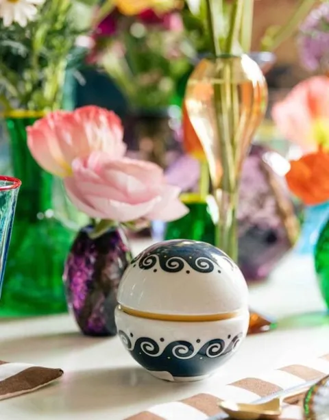 When it comes to a gorgeously dressed table, the smallest details can bring the biggest delight. Enter our handsome round Salino, crafted in finest Italian porcelain and ready to be filled with salt or pepper to kick-start conversation before dinner has even begun. A perfect little size to fit in your hand, it is decorated in our hand-drawn Odysseus print inspired by Naples with a whole collection of tabletop beauties to match. Double it up to make a kick-ass wedding or hostess gift.