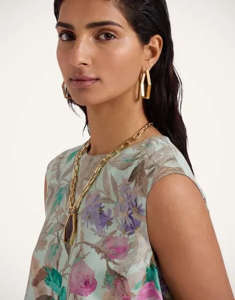 We took two of our favorite tops – the Foulard Shirt and the La Scala – and combined them for the ultimate summer statement shirt. Crafted from our butteriest Italian silk twill, The San Carlo Top starts at the shoulders in a classic tank cut, before flowing into a romantic scarf train that floats dramatically behind you as you sashay through the trattoria. Easily elevating your favorite pair of jeans, she’s extra special paired with our 24/7 Pants.