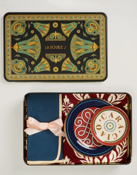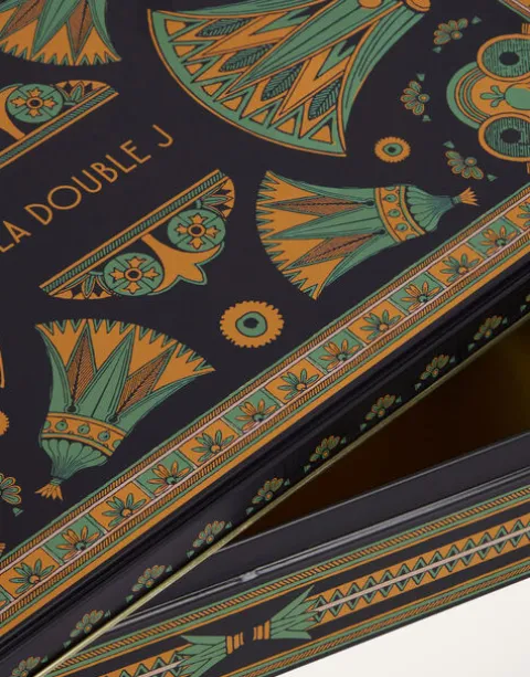Who ever made up the line “Secrets, secrets are no fun…” clearly never had their own LDJ Segreti Case. The most mysterious member of our Case of Curiosities collection, this decorative tin box holds within it a multitude of maximalist uses – photos from past clandestine adventures, classified letters from former lovers, your powerful LDJ Papyrus print Scala Tee and Jeans combo, or your feathered slippers for sneaking around in style. No matter what you put in it, with a print this perfect, anyone who spies it will be curious as to its contents.