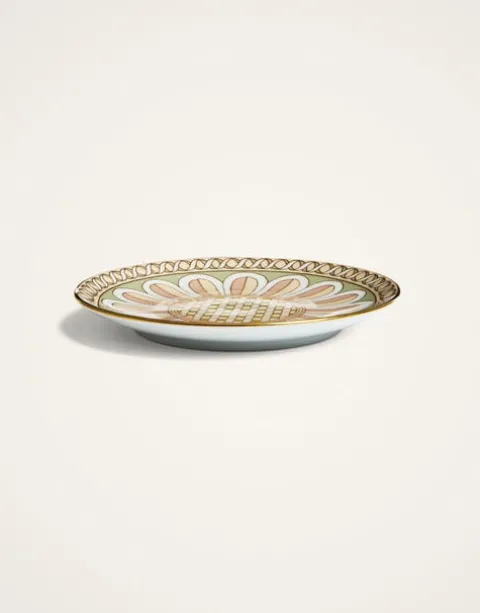 Make snacking stunning again! Great for bread, salad or aperitivo course, this sophisticated side plate is crafted in finest Italian porcelain and finished with a hand-painted 18k gold rim. Delivered in this delicious Napoli motif, it’s smaller than our Dessert Plate and highly versatile. Buon appetito!